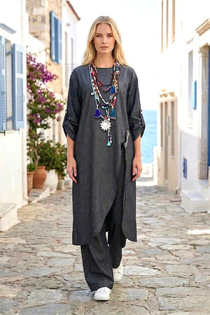 Antrasit Cep Detaylı Tensel Gömlek Elbise