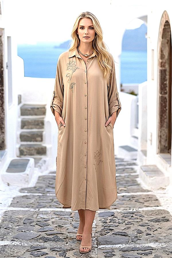 BEJ ÇIÇEK NAKIŞLI GÖMLEK ELBISE ...