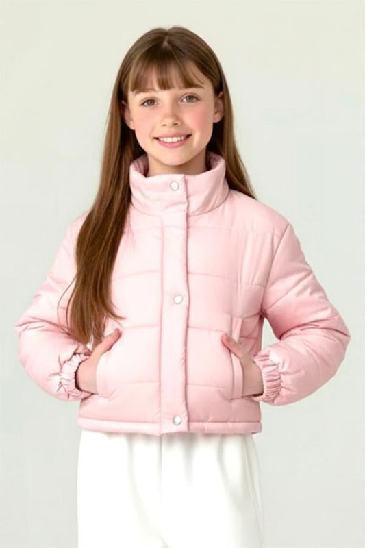 Kız Çocuk Pudra Rengi Çıtçıtlı Fermuarlı Şişme Mont