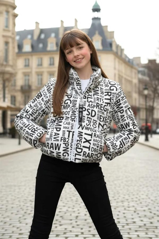Kız Çocuk Beyaz Yazılı Şişme Mont