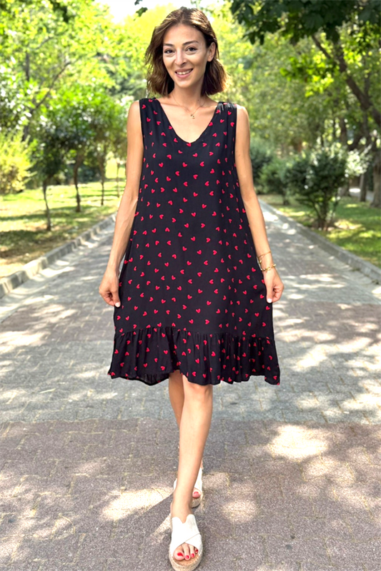 Siyah Kalpli Kalın Askılı Fırfırlı Kısa Elbise