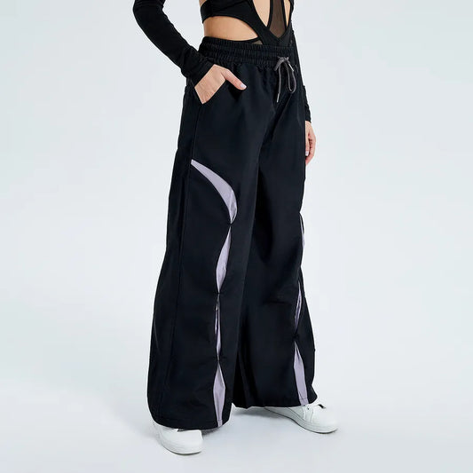 Yüksek Bel Bağlamalı Renk Kontrastlı Bol Dokuma Pantolon