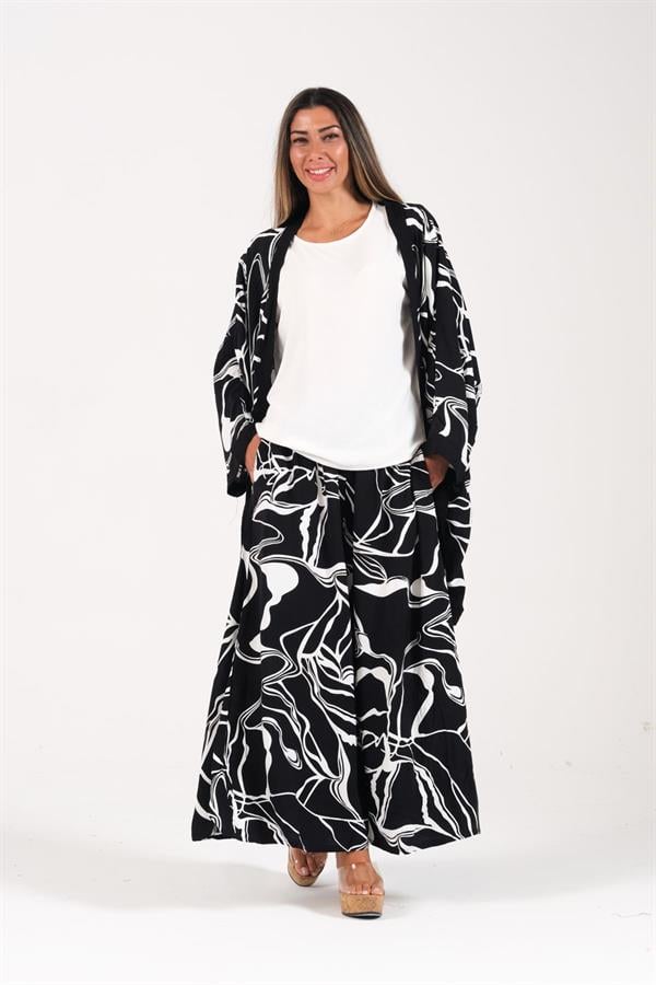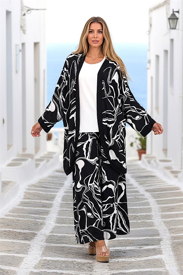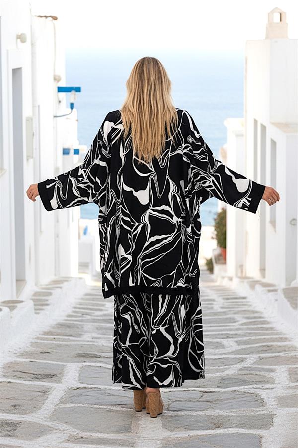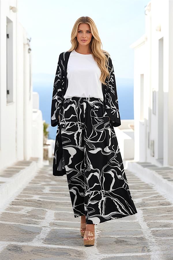 Siyah Desenli Tunik Bluz Pantolon Üçlü Takım