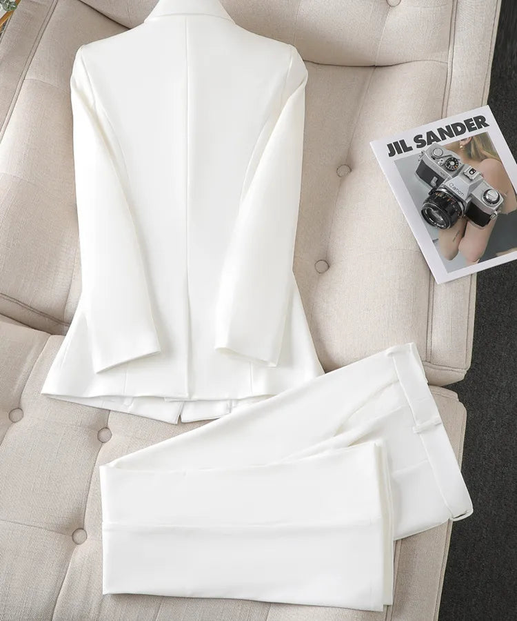 Yelekli Dar Kesim Üç Parçalı Takım – Kollu Ceket ve Pantolonlu Commute Stili Set